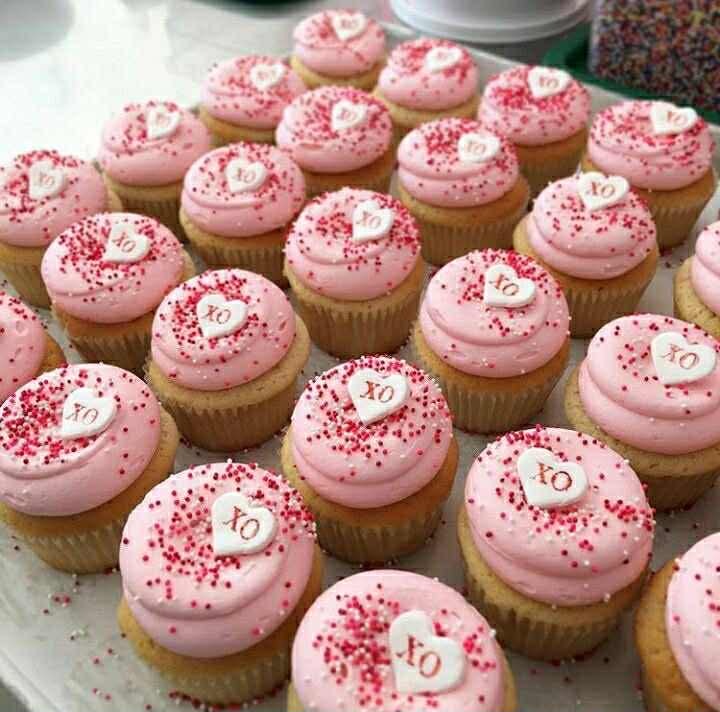 Celebrate with delicious vanilla cupcakes topped with buttercream frosting and sprinkled with candy pearls and finished off with an XO chocolate heart.